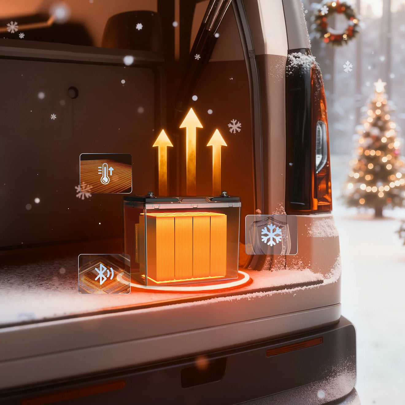 The auto self-heating function will be activated by the BMS when the battery is connected to a charger at -20℃ to 5℃ (-4℉ to 41℉). The heating will stop when the battery temperature reaches 10℃ (-4℉).