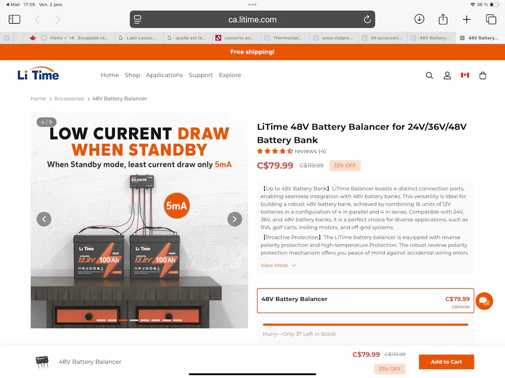 【Up to 48V Battery Bank】LiTime Balancer boasts 4 distinct connection ports, enabling seamless integration with 48V battery banks. This versatility is ideal for building a robust 48V battery bank, achieved by combining 16 units of 12V batteries in a configuration of 4 in parallel and 4 in series. Compatible with 24V, 36V, and 48V battery banks, it is a perfect choice for diverse applications, such as RVs, golf carts, trolling motors, and off-grid systems.