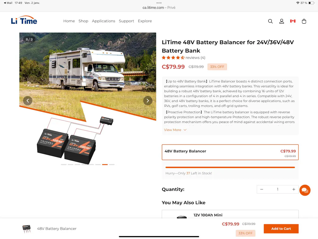 En regardant la description rapide du produit, on montre 2 batteries sans rajouter la mention SERIE seulement. Donc, comme j'utilise 2 batteries en parallèle, ce produit ne règle pas mon problème qui se décharge chacune de façon trop différente. Donc, on aurait dû me dire qu'il est déconseillé d'utiliser 2 batterie ou plus, en parrallèle et me proposer 1 batterie de 230A au lieu de 2 x 100A.